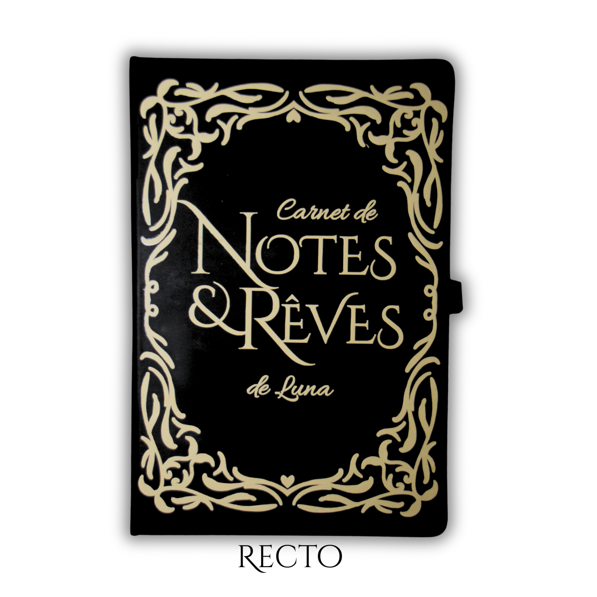 Le carnet A5 est décoré avec un design doré en vinyle de haute qualité. Chaque exemplaire est unique et peut présenter de légères irrégularités, typiques des créations artisanales.