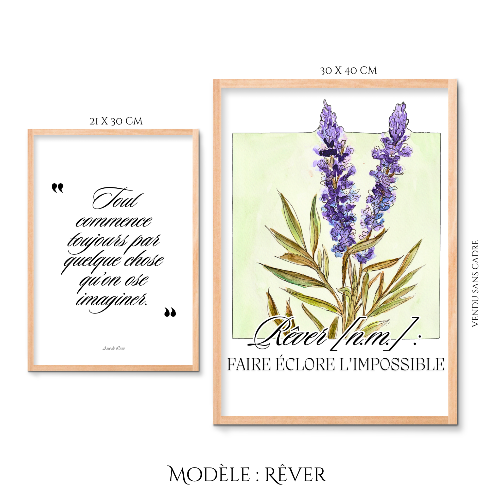 Duos affiches délicates thème "Rêver" mêlant illustration florale et citation poétique, pour apporter douceur, sens et émotion à votre intérieur.